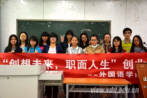 [本站讯]10月23日,由外国语学院学创部主办的“创想未来,直面人生”创业讲座活动在洪家楼校区举行。英米网络科技有限公司法人代表、11级德语班蔡镇和山东济南陶族印象公司合伙人、12级英政班王盛作为特邀嘉宾出席活动并分享他们的创业历程。