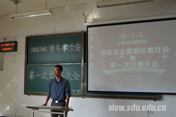 [本站讯]10月11日,山东大学土建与水利学院召开学生组织主席部长聘任会暨第一次见面大会。土建学院党委副书记兼2015级辅导员周作福到现场指导,学生会主席、学生组织部长团及全体新生干事于会上展开了深入交流。