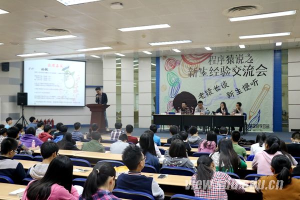 [本站讯]10月15日晚,软件学院“程序猿说”新生经验交流会举行。软件学院优秀学生代表林铖、吴鹏飞、郑海波、刘聪颖、陈潇瑞出席参加交流会和大家分享学习和生活经验。