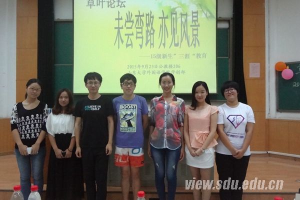[本站讯]9月23日,由外国语学院学创部主办的2015级新生“三涯教育”草叶论坛在山东大学洪家楼校区举行。