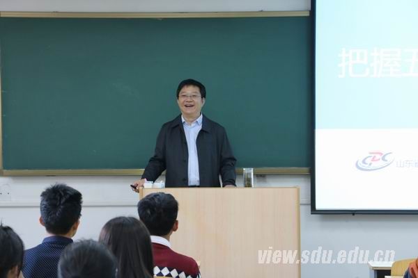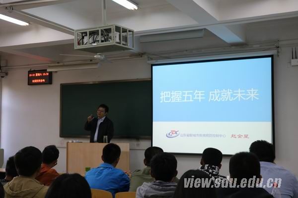 [本站讯]10月10日,由聊城市疾病预防控制中心主任赵金星主讲的主题为“把握五年,成就未来”的新生入学教育讲座于山东大学趵突泉校区举办。讲座由学院党委副书记李士保主持,公共卫生学院辅导员孔令奇及15级全体新生参与了本次讲座。