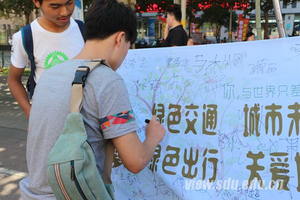 即将到来的中国城市第九个“无车日”,其主题是“绿色交通——选择·改变·融合”。山大车协提倡将绿色出行与社会生活相融合,努力将绿色出行变成提升市民生活品质的方式。