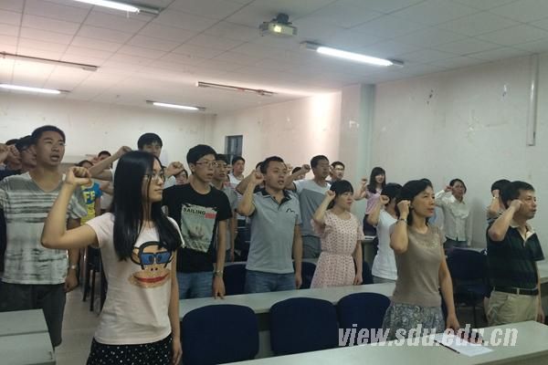 大会在庄严的国际歌中拉开帷幕。首先进行新党员宣誓,全体党员信念坚定不移,声音铿锵有力,表达了艰苦奋斗、争做优秀党员的信念和为共产主义奋斗终身,随时准备为党和人民牺牲一切的决心。新党员代表张帅追溯党的光辉历程,表达了新党员要践行承诺、不断提高、向优秀党员靠拢的决心。接着,老党员代表赵希波就“加强理论学习”这一点又做了阐释。他从自身经历出发,谈到当今党员理论学习不足的现状,对学生党员提出“平时多注意学习一些基本原理”和“多关注热点、补充知识”的希望。他说,只有加强理论学习,才能端正入党动机,提高党性修养,只有加强理论学习,才能严格遵守国法党纪!