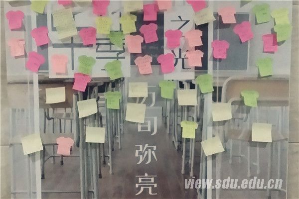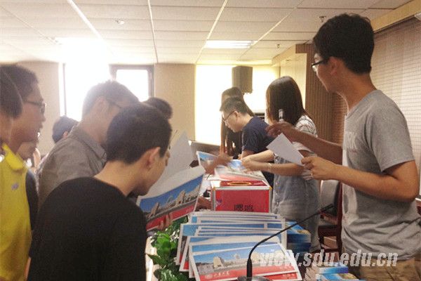 接下来,同学们展示了前一阶段毕业教育活动成果,将“昨日春华秋实感山大情深,明天饮水思源做国之栋材”、“心系数不清的山大时光,挥别道不完的珍重之情”等条幅悬挂于学院中,感激母校母院的培养;现场发放山大风景明信片,毕业生为自己的父母写一段话,感激双亲养育之恩;宣读了《哲社学院2015届毕业生廉洁诚信倡议书》和《文明离校倡议书》,号召所有毕业生“敬廉崇洁、诚信做人”,文明离校,安全毕业。然后,学院为每一位2015届毕业生发放哲社师生自主创意、设计的印有“致2015届校友”标示的毕业大礼包。为传承学校“荣我山大”的捐赠文化,倡议每一位毕业生向即将步入大学校园的2015级新生捐赠,以表达自己的一份心意。所有款项将用于资助学院2015级家庭经济困难学生,体现饮水思源反哺山大、哲社精神薪火相传之意。