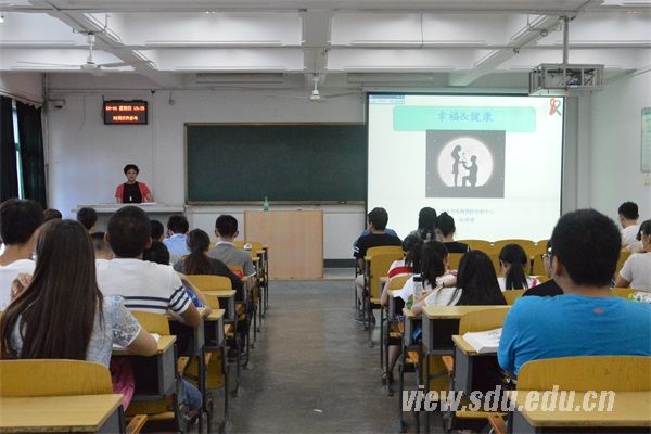 阮师漫首先向大家展示了一些有关男女恋爱观、性取向以及是否接受大学期间发生性关系等调查的数据,并就这些数据以及感染艾滋病的人群进行了一番深入剖析。她发现现今大学生艾滋病感染者逐渐增多,而且以男同性恋者为主。接下来,阮师漫从性健康的概念说起,表示性健康包括三方面——性生理健康、性心理健康和性社会健康。接着她由总体到局部,逐级分析了全球、中国、山东省艾滋病防治面临的形势与挑战,着重分析了济南市艾滋病的流行状况及特点,更正了同学们对艾滋病的一些错误认识,如:携带艾滋病病毒就是其患者,蚊虫叮咬会传播艾滋病等。她还给在座的大学生们提出了一些保持身体健康的建议:由于艾滋病可以通过血液传播,大家在纹身、纹眉等时应选择正规的大医院进行就诊,在性方面,建议大家洁身自好,珍爱自己。