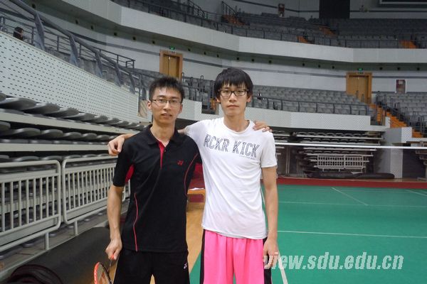 [本站讯]5月23日至24日,“山大杯”羽毛球赛比赛在中心校区展开。经济学院陈维祺和夏楠荣获男子双打冠军。