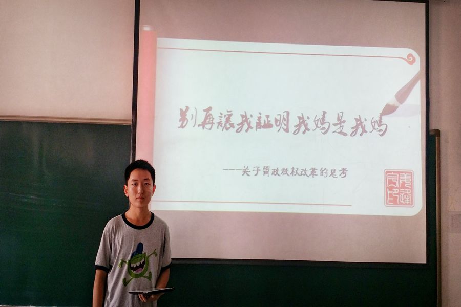 首先,姜逢宇为大家播放了一段沙画视频,生动的引出大讲堂的主题,并且带领大家一同交流分享自己所遇到的审批障碍。随后,姜逢宇将“行政许可”和“非行政许可审批”这两个容易混淆的概念通过表格进行对比,让大家对其不同之处一目了然,并且详细分析了非行政许可审批从产生到发展再到出现弊端的整个发展过程。最后,结合同学们的讨论,姜逢宇总结出审批障碍问题需要通过取消、转为行政许可审批、转为政府内部管理事项和进行进一步调整规范这四步来解决。