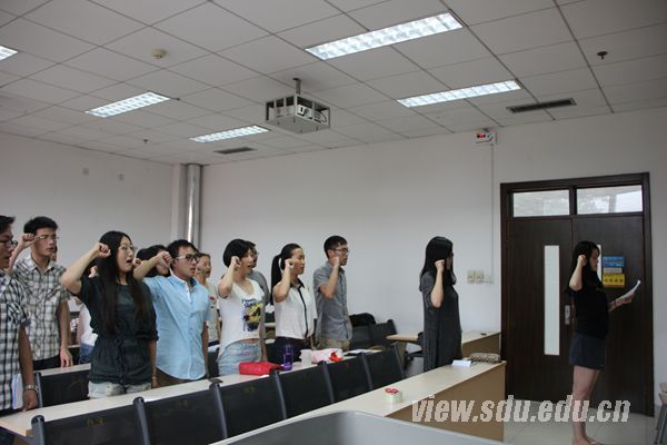 会议在《国际歌》的歌声中拉开序幕。随后,所有毕业生党员面向党旗,庄严宣誓。宣誓后,研究生党员代表发言,表达了对母校培育之情的感谢,希望所有党员同学们毕业后不要忘记母校,在自己的岗位上以党员的标准严格要求自己,为社会主义建设添砖加瓦。本科生党员代表在发言中回顾了大学四年的学习生活,并对美好的未来表示期待,提出毕业后无论是继续深造还是踏入工作岗位都会铭记今天的誓言,将党的纲领牢记在心,不断提升思想政治素养,终生学习、报效祖国、立志成才,以实际行动回报党组织的关怀和信任。 随后,辅导员于沂仟发表讲话。她以一名老党员的身份向同学们传达了党组织对每个人的关怀和牵挂,并为他们即将顺利毕业表示祝贺。同时她也向全体毕业生党员提出了殷切希望:在离校期间要发挥党员先锋模范作用,保证安全、稳定、文明地离校。在未来的工作岗位中继续踏实工作,在未来的学习中继续勤奋进取,以践行山东大学“为天下储人才,为国家图富强”的办学宗旨。