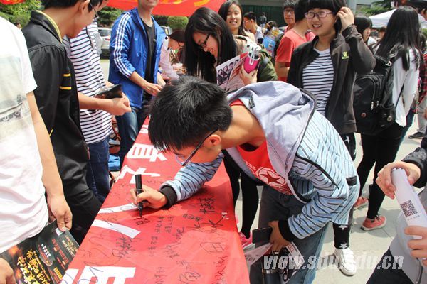 [本站讯]5月15日,为了响应习近平主席提出的“八字真言”,土建与水利学院2014级地空系在兴隆山校区进行“倡八字真言,舞别样青春”的签名活动。