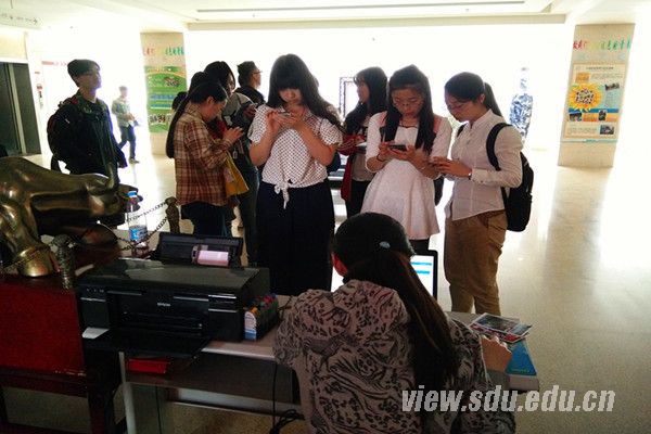 此次微卡活动为学院团委联合山东省邮政局举办,由邮政局免费提供600张微卡,并在收寄期间现场打印邮寄。微卡是消费者在现场直接取景拍照,把照片投送到相关微信平拍,DIY制作,填写地址然后邮寄给母亲。微卡相对于家书来说是一种新型的传递感情的方式,它的基本流程是:关注微信号—发送图片—进入制作页面—选择明信片模板—填写祝福语—留下邮寄地址—网上支付—制作完毕,邮政后台打印并邮寄。网上支付在此次活动中是免费的,吸引了许多教职工和大二大三及研究生的参与。由于此次活动参与人数较多,打印机器数量有限,现场打印速度也显得较慢。不过在学院的合理安排下,分时段进行打印使得活动现场进行得较为顺利。现场参与者热情满满,都希望通过这小小的微卡能给母亲带来一份惊喜,也借此微卡表达自己对母亲的感恩和祝福。