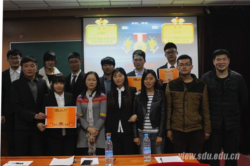 [本站讯]4月11日,体育学院2015年“体院杯”辩论赛总决赛在千佛山校区举行。经过激烈的比拼之后,“飞翔队”最终夺得冠军,张展翔获得“最佳辩手”称号。