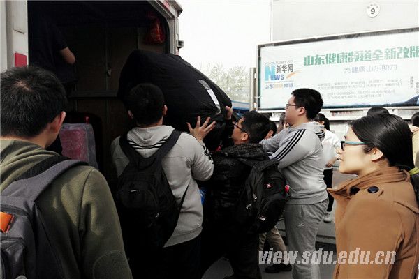 前来送行的同学们纷纷在运送行李的货车旁搭手帮忙,几十个行李在同学们的共同努力下不一会儿就装车完毕。送行的同学们还把制作的横幅拉起来,祝福的话语中寄托着老师同学们的期盼。这样的考古实习送行仪式,已经成为历史文化学院的传统之一。