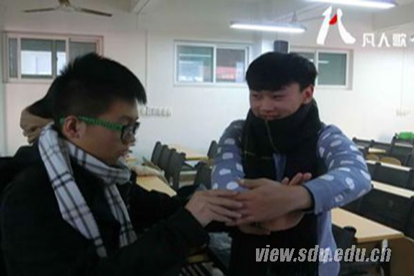 穿上戏服,上台排练的他们,是严肃的,认真的;身着便装,场下休息的他们是欢乐的,顽皮的。排练前的小憩对演员体力的保持至关重要,而用手比出一个个象征胜利的“v”则代表着演员们的自信与乐观。