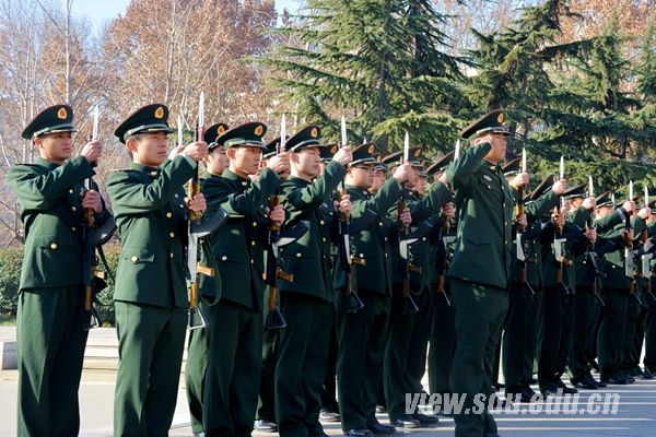 [本站讯]2014年12月13日是首个南京大屠杀死难者国家公祭日,中国人民解放军驻山东大学后备军官选拔培训工作办公室组织在校国防生举行纪念活动,缅怀77年前在南京大屠杀中惨遭杀戮的30万无辜同胞和在抗日战争中为了民族独立英勇牺牲的革命先烈。