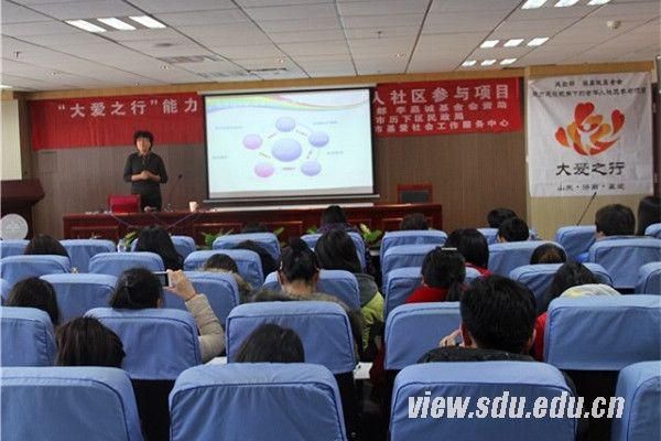 [本站讯]12月13日,“大爱之行——能力建设视角下的老年人社区参与”项目哲社学院开展的项目培训沙龙在中心校区举办。此次培训邀请到成都市爱有戏社区文化发展中心主任刘飞女士作培训报告。山东大学哲社学院社会工作实务研究室主任张洪英副教授出席并主持了此次培训。