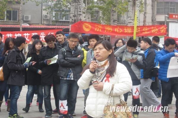 [本站讯]11月29日,在世界艾滋病日即将到来之际,公共卫生学院的志愿者们在英雄山广场参加了由市中区疾病预防与控制中心组织的大型艾滋病防治宣传活动——“为‘艾’走泉城,我们在一起”宣传活动,以呼吁市民向零艾滋迈进。