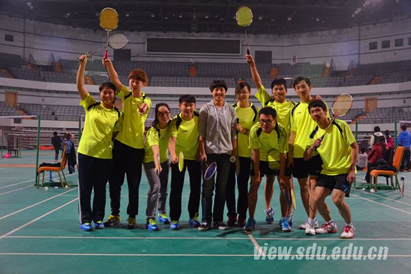 [本站讯]11月22日至23日,“山大杯”羽毛球团体赛的淘汰赛阶段在中心校区举行。体育学院分别战胜机械学院、外语学院、管理学院和公卫学院,获得冠军。
