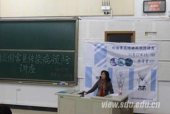 [本站讯]11月27日,应材料科学院的邀请,山东大学校医院预防科科长高文花在兴隆山校区作了关于校园常见传染病预防的讲座。