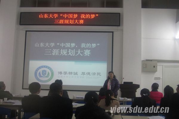 [本站讯]11月15日下午,由山东大学党委学生工作部主办,公卫学院承办的“中国梦•我的梦”大学生三涯规划大赛决赛于趵突泉校区举行。党委学工部张伟,护理学院党委副书记张慧,化学学院党委副书记赵希波,公卫学院党委副书记李士保以及来自13个学院的学工办老师出席并担任评委。