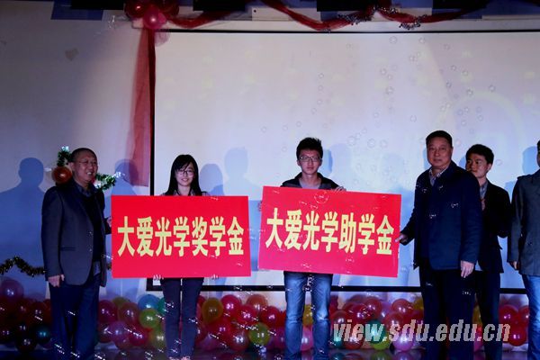[本站讯]11月7日,信息科学与工程学院2014年迎新晚会暨“大爱光学”与概伦奖助学金颁奖典礼在兴隆山校区举行。参加本次晚会的有信息学院党委书记王卿璞教授,副院长李德春教授,党委副书记张东升、卢士涌,学生工作办公室主任崔剑及学院辅导员老师,同时出席晚会的还有济南概伦电子科技有限公司副总裁梅晓东先生,山大光学系79级校友、北京同州维普科技有限公司孙宏伟先生等。