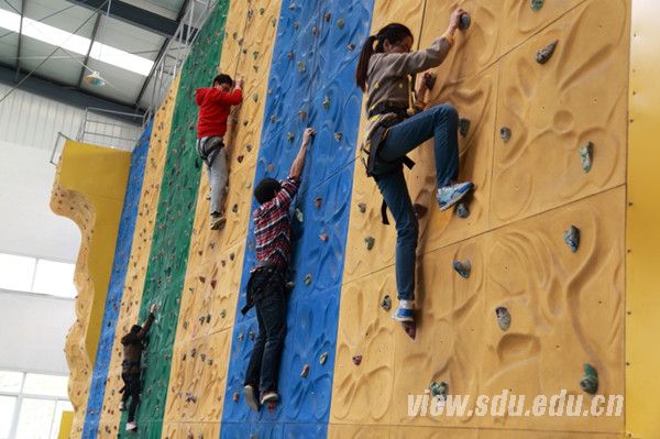 在拓展前的热身活动中,教练讲解了此次活动的宗旨:挑战自我,熔炼团队。根据教练指示,同学们分为四组, 积极设计队名、队歌、口号、队旗,以饱满的热情投入到了接下来的活动中。活动首先是团队PK:四组开始“有轨电车”比赛。参赛队员们站在木板上,步调一致地向前走,最先到达者胜出。从开始的各执己见,我行我素,到最后的步调一致和齐心协力,每个队伍前进的速度、质量都在进步。胜利者高声欢呼,失败者马上总结经验教训,准备再战,在实践中学习解决问题,在竞争中学会合作,增强了责任心,学会了包容,明白了团队合作的重要性。接下来是个人挑战:队员们依次挑战“攀岩崖降”,在教练的悉心指导下,队员们克服自身的恐惧,勇敢直上,挑战自己的极限,遇到困难不气馁,不断调整策略,寻找最佳路线,坚持到底,最后,所有学员都成功攀岩到了最高点。最后是信任背摔,挑战者背对着队友站在两米高的平台上倒下,队友用胳膊床垫接住自己的队友,考验的是参与者的信任,挑战的是参与者的勇气。阳光下,我给出我的肩膀,你伸出你的双臂,成就了每一精彩瞬间。团队训练结束后,培训教练做了活动总结,并对参加培训的队员提出了四点期望:一、根植于内心的修养;二、无需提醒的自觉;三、以约束为前提的自由;四、为他人着想的善良。