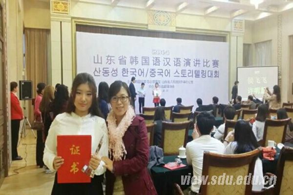 [本站讯]10月30日,由山东省人民政府外事办公室、韩国驻青岛总领事馆主办的“山东省韩国语汉语演讲比赛”在济南珍珠泉宾馆会议厅举行。来自全省16所高校的32名选手参加了本次比赛,山大外国语学院朝鲜语系甘露同学在本次比赛中表现优异荣获亚军。