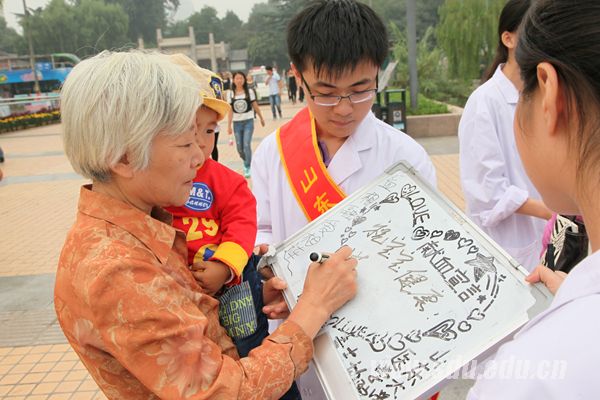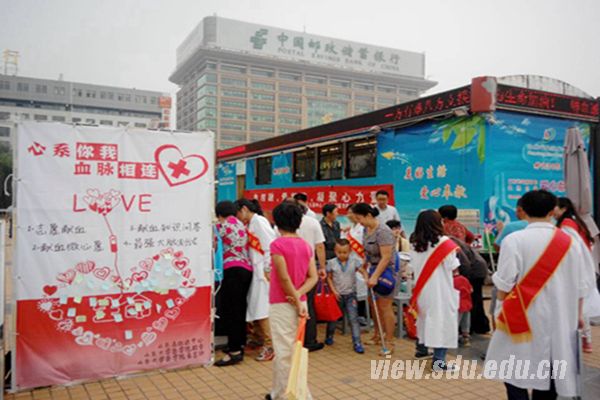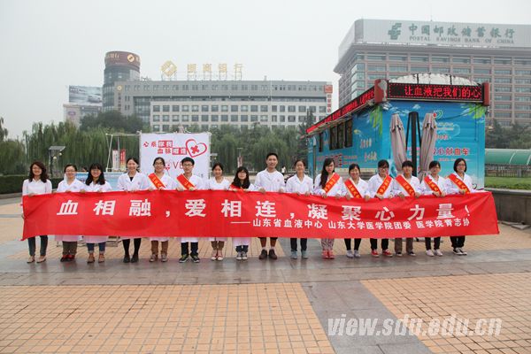 [本站讯]9月27日,由山东省血液中心、山东大学医学院团委主办、医学院青志协承办的无偿献血系列活动在济南市泉城广场顺利开展。此次活动旨在倡导市民积极无偿献血,提高公民的社会责任感,增强其人文关怀,以促进社会主义和谐社会的构建。 上午,医学院青志协工作人员带领志愿者们一行共25人到达泉城广场,进行献血系列活动的准备工作,一个小时后,活动正式开始。本次献血系列活动包括“正视献血,消除误区”献血知识问答、“血脉最心声”献血微心愿、最强大脑测试和“心系你我,血脉相连”献血宣言四个部分。其中,献血知识问答通过抽签答题的方式,在普及无偿献血相关知识的同时增强市民对无偿献血的关注度;献血微心愿活动中市民们将自己的心愿写在彩色纸片上来表示对无偿献血的支持和对血液需求者的祝福;最强大脑测试由脑龄测试、记忆力测试和反应速度测试三个小活动组成,深受孩子们的喜爱。同时,此环节也是对孩子们智力开发和发现其天赋的过程;在献血宣言环节中,志愿献血者将个人的献血宣言写在白板上,并以主题海报为背景进行拍照留念,活动照片将于后期处理后交由新浪山东进行宣传。在活动进行的同时,医学院青志协的志愿者们积极询问参与活动的市民是否有献血的意愿,并引导有意愿者在献血咨询处和信息登记处进行相关咨询和信息登记。山东省血液中心负责人张宇和山东大学医学院团委书记曲珊娜亲临活动现场,对志愿者的工作和活动的成果表示高度肯定。 此次献血系列活动知道傍晚才顺利结束。通过本次活动,市民们对献血知识有了更加深入的了解,更多的市民表示愿意参与到无偿献血中来。活动期间采集到的血液为省血液中心补充了血液储备,为那些急需用血的患者提供了生命之源。同时,鼓励无偿献血行为大大增强了市民们的公民意识和奉献意识,并为和谐友爱的社会氛围的建立以及社会主义核心价值观的形成与传播积攒了正能量。