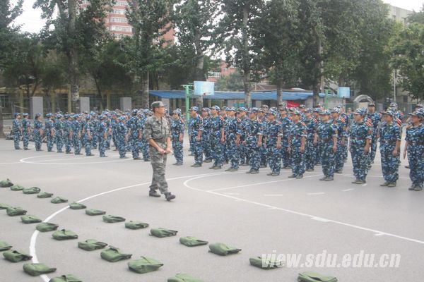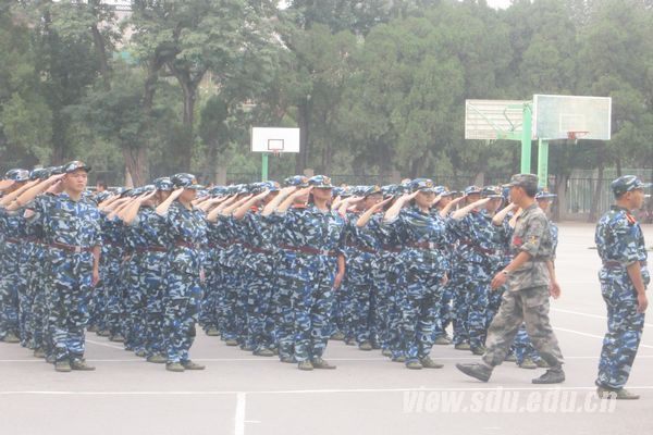 [本站讯]9月9日下午,公卫学院2014级新生在趵突泉校区运动场开始了第一次正式训练,身着迷彩服的新生与教官们在一言一行中展示了坚强向上的军训精神。 参加军训的新生于下午一点四十分准时集合完毕,在教官的带领下,迈着整齐的步伐,喊着嘹亮的口号,昂首挺胸走进了足球场,开始了四个小时的训练。训练中,闷热的天气并没有阻挡同学们的激情。军姿、敬礼、跨立、下蹲,第一次训练的同学们很快适应了教官的严格要求。教官虽严,但也有温柔的一面。及时扶住晕倒的同学,给口渴的学生递一杯水,教官在细节处对学生的关怀无意中拉近了彼此的距离。休息期间,四营20连4排教官说:“学生们今天下午表现得很好,很有激情。虽然今天下午的天气有些闷,但学生们还是很积极的投入训练,尽管有些姿势做得不标准,但看得出来他们很用心,我相信我们的学生能出色地完成本次军训。”下午6时许,新生们结束了一天的军训路程,有同学感慨:“今天才算是军训真正的第一天。我用一个句话来形容:累并快乐着。和教官相处和睦,能从他们的眼里读出对我们的期望。我一定要好好完成军训的任务,不辜负教官对我们的信任。” 晚上,同学们陆续回到宿舍,却并没有松懈,教官们不辞辛苦来到宿舍里亲身示范如何整理内务,同学们认真观看,并着手整理宿舍。新生们初感军训时集体生活的酸甜苦辣,期待明天他们会有更好的表现。