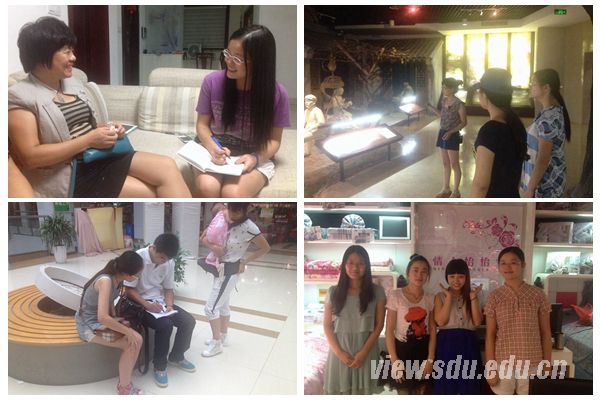 调研期间的主要任务是掌握家纺企业的发展与现状,通过实践调研了解行业背景、行业环境、行业政策,进而探究出行业转型发展契机,为日益竞争激烈化的市场环境下企业的生存创新出一条新的道路。队员们采访了不少中小型商家,如金麒麟家纺、情人恰恰家纺、富玖科技、兰芙家纺等十多家厂家,并赠送了印有山东大学风景的明信片作为礼物。某企业负责人王女士(所有商家及政府官员,均要求我们对采访进行匿名)表示电子商务的低成本性、快速比价性,造成了中小企业生存压力巨大,以及市场价格的倾轧,进一步造成了因价格竞争造成的部分商家假冒伪劣现象,破坏了市场秩序。一位不愿透露姓名的总监表示,新环境下他们企业转向推广睡眠新理念模式,在传统家纺产品采用新兴技术,同时为消费者提供产品进行睡眠体验,企业还致力于开拓新的营销对象,推出了面向学生的特别优惠。另一企业负责人金先生表示,他们注重转向精品化路线,注重中高档商品及中高端消费人群,对家纺产品进行八个主题的展示,突显奢华与时尚的现代气息。