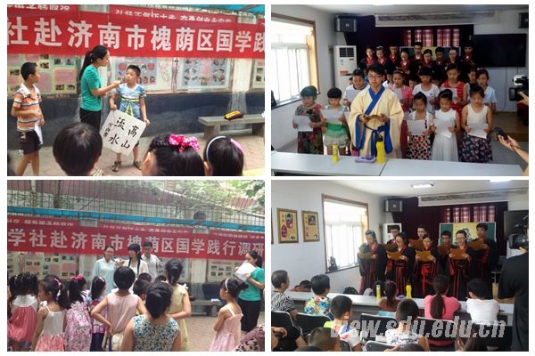 [本站讯]7月中下旬,山东大学国学社暑期社会实践团队奔赴济南市槐荫区,开展了为期十多天的国学践行支教活动,受到了包括山东商报、济南新闻广播等几家媒体的报道。据悉,活动已持续到第五届,其中第三届活动曾获得中国大学生社会公益奖铜奖。