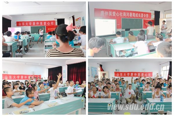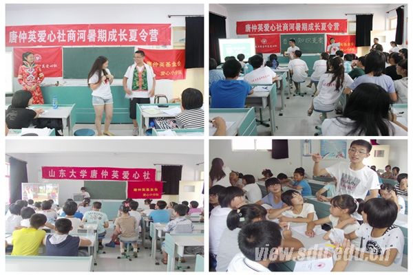 此次夏令营紧紧围绕“青春·筑梦·成长”主题,分为“成长计划”“成长通识课”“成长兴趣小组”“成长特色活动”四个模块。夏令营由山东大学党委学生工作部陈付波带队,山东大学唐仲英爱心社15名队员作为教员参与其中和50名商河县胡集中学的同学度过意义非凡的暑假,一同成长,收获快乐,为梦想助力,为青春添彩。