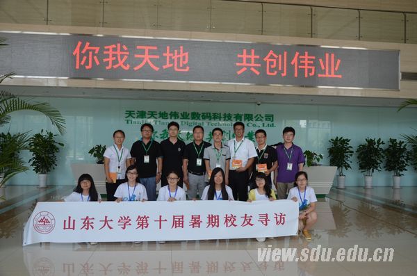 [本站讯]7月11日,山东大学第十届暑期校友寻访团天津名企之行正式开始。寻访团走访了天津力神电池股份有限公司和天津天地伟业数码科技有限公司,与公司中的山东大学校友进行了交流。
