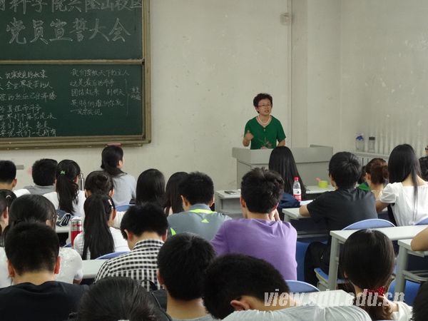 会议由2012级党支部组织委员童坤主持。会议首先进行了奏唱国歌。之后,在2012级党支部杜凯同志的领誓下,新党员庄严宣誓。新、老党员代表魏诗媛、蔡笑樱随后分别发言。他们表示,中国共产党是伟大的党,共产党党员光荣而肩负重任。党员要更加注重理论学习,并落实到实际行动上,为其他同学作出表率。