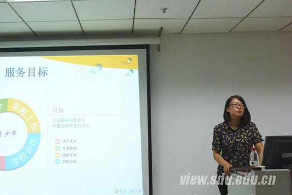 [本站讯]6月4日晚,哲社学院在中心校区举办题为“青少年项目服务分享”的讲座,邀请了济南基爱社会工作服务中心副总干事燕操,为同学们作相关介绍。