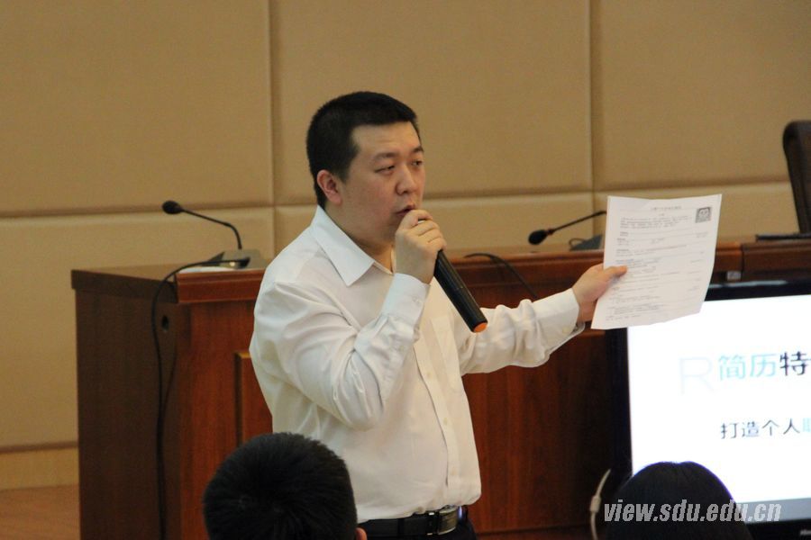 [本站讯]5月8日,政管学院“职等你来”就业训练营简历特训讲座在洪家楼校区举行。培训会由简历制作专家——上海乔布堂信息科技公司CEO马晓先生主讲。院党委副书记刘军、彭展出席本次会议。刘军主持了本次培训会。