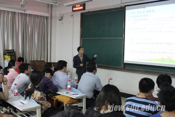 会议伊始,滕玉军对徐洪民和萨仁图野的到来表示欢迎,并强调职业生涯规划大赛对能动学子的积极作用。决赛共有来自能动学院各年级的12名同学参加。比赛中,选手主要围绕自我认知、环境分析、就业计划以及计划调整四个方面向评委及观众展示自己的职业规划,并回答由评委提出的问题。参赛选手大多使用霍兰德、SWOT等分析方法对自己的职业兴趣、性格等进行测试,确定适合自己的职位。第一位参赛选手是能动学院研究生王曼,她在自我认知环节中,就运用霍兰德职业兴趣测试对自己进行深刻的剖析,得出适合自己的职业类型,初步确定第一目标为办公室职员,并将生活分为三个阶段,一步步获得心仪的职位。此外,为避免社会、家庭等绝对因素的影响,她还为计划作出调整,制定大量备用方案,使得职业规划更为完善。在被问及毕业后为何选择就业而不进行科研工作时,王曼从兴趣以及所学类型两方面说明自己更适合就业。而作为为数不多的已经找到工作的选手,杨博实表示,本次职业规划大赛最重要的是要认清自己,做好自我认知部分的工作。他还提到,由于自己已经找到工作,所以他做的职业规划更多的是对未来的计划,大一大二的同学们对就业形势并不是很清楚,所以更重要的是如何准确定位自己。