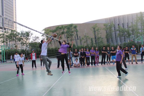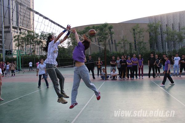 [本站讯]5月6日,“山大杯”女子排球赛决赛在中心校区举行,体育学院以3:2战胜外语学院获得冠军。 首局比赛,外语学院率先发球,体育学院凭借精湛的扣球技术和球员之间默契的配合,以25:17的比分领先。第二局比赛,外语学院进行战术调整,明确了战区分工,进攻相当猛烈,双方比分交替上升,频频打成平局,比赛陷入僵持状态。由于体育学院屡次发球失误,外语学院以26:24的比分胜出。第三局比赛,外语学院借上局反攻胜利给体育学院施压,体育学院在24:24平局时被迫暂停比赛调整战术。然而受第二局比赛的影响,体育学院接连出现配合失误,外语学院以26:24拿下本局胜利,大比分2:1率先拿到赛点。 第四局比赛,比赛进入高潮。体育学院发动强势进攻,球员之间相互配合,力争稳中求胜,打得外语学院措手不及,最终以25:14扳回一局。第五局决战,体育学院张琼丹以完美的扣球带动球队打出8:2完美开局,体育学院最终以15:6拿下最后一局,完成逆转,凭借3:2大比分取得比赛胜利。