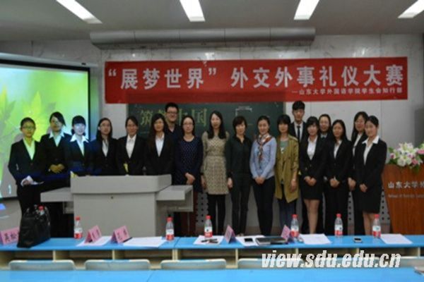 [本站讯]5月6日晚,由外语学院学生会知行部主办的“展梦世界”外交外事礼仪大赛决赛在洪家楼校区举行。
