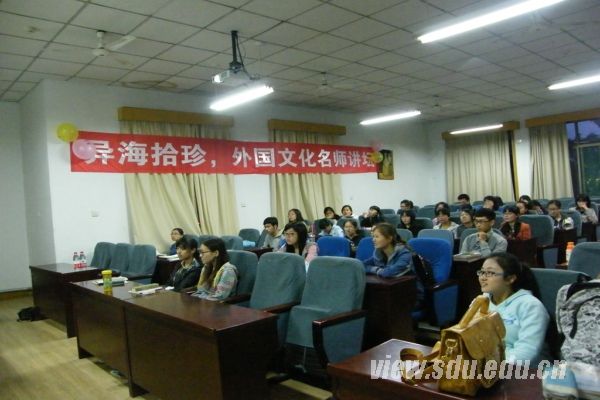 [本站讯]4月27日晚,由外国语学院大学生读书指导与爱好者协会主办的”异海拾珍”外国文化名师讲坛在洪家楼校区举办。