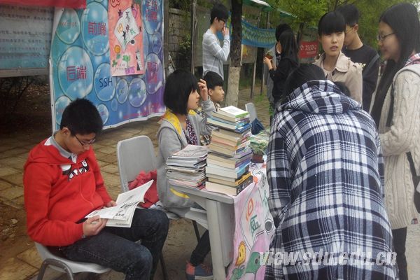[本站讯]4月27日上午,青年志愿者联合会举办“旧书换盆栽”活动,活动的主题内容是大家可以用两本看完的适合小学生阅读的书籍换取盆栽一个。青志联会将活动中收集的书籍捐献给某些小学,供给那里的小学生阅读,用来提高小学生的课外生活,开拓他们的眼界,丰富他们的学习内容等,在此同时也增加了这些书籍的价值。