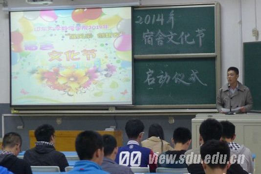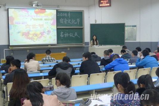 仪式由2013级傅豪主持,学院辅导员鲁皓、12级和13各班级班长、团支书、生活委员以及各个宿舍舍长参加了本次仪式。活动伊始,鲁皓向大家讲解了宿舍文化节的具体内容和流程,强调,宿舍文化节举办的必要性不仅仅在于收拾宿舍卫生,更重要的是通过齐心协力整理自己的“小家”,来增强全体宿舍成员的凝聚力和集体荣誉感,而使大家体验到大学生活的真正意义。而后,她又说明了有关门上窗设计、公益广告设计、宿舍书画摄影大赛和宿舍文化原创作品的评比细则。作为宿舍文化节的主要组成内容,这些评比充分体现了宿舍各成员的创造力,也使每个宿舍各具亮点。同时,她也向大家说明了此次宿舍文化节的奖励规定。随后,12级优秀宿舍舍长胡立群出场为大家做介绍。他所在的宿舍在去年获得了院级二等奖。他用PPT展示了他们的“独门”创意,并阐述了自己对文化节的一些见解——资金投入不是最重要的,凝聚力和创造力才居首位。他从壁纸、柜子等的装饰细节到资金投入都为大家仔细介绍了经验,让在场各位同学都感受到了一个积极进取的宿舍团结的力量。学院学生会秘书处部长傅一笑播放了数学学院部分优秀宿舍的视频,作为样板评比视频给大家展示。之后,他又详细说明了关于宿舍提供评比照片和设计舍徽的有关事宜,他表示,从收拾宿舍的每一个细节到宿舍舍徽等问题,都考验着宿舍成员的凝聚力和创造力,让大家在好奇和向往的同时,也有了丝丝的压力。仪式最后,傅豪宣布,数学学院宿舍文化节正式启动。
