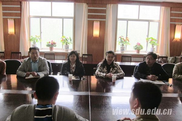 会上,傅艺娜首先对山大附中多年对研究生支教团的大力支持表示感谢。她表示,附中的先进教育理念与优良的办学条件为支教团成员提供了良好的教学培训,支教团之所以能在西部取得较好的支教成果离不开附中多年来对支教团的一贯支持。在听取了支教团队员的实习感受后,傅艺娜对队员们虚心向附中老师取经的态度与他们和附中学生形成的良好师生关系表示赞赏。此外,她还就接下来队员们如何更好地提高教学技能提出了建议。申桂华表示,支教团成员放弃城市的优越条件到西部支教的行为充分践行了山东大学“为天下出人才,为国家图富强”的办学宗旨,队员们近一个月的表现也令她感动与敬佩。申桂华结合自己多年来的教学实践向支教团成员传授了经验。最后她还表示,山大附中愿意随时与支教团保持联系,为其提供力所能及的帮助。校团委老师顾乃静、山大附中老师张敦迎参加会议并发言。