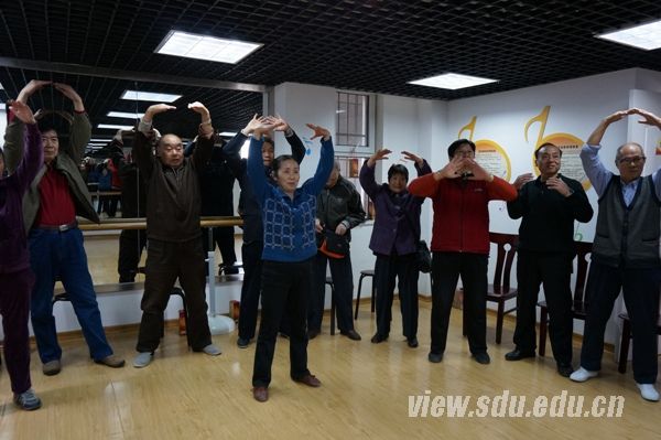 上午,医学院志愿者到达社区党群服务中心,在工作人员的带领下,进入活动室进行准备工作。之后,社区老人和其他参与活动的居民陆续到场。志愿者首先向老人们讲解老年人跳健身操的益处和注意事项并做出示范,随后对他们进行一一指导,帮助他们尽快学习掌握健身操的动作要领。老人们表现出高涨的学习热情,还为志愿者表演了太极拳。志愿者和老人们相处融洽,整个活动室洋溢着欢声笑语。