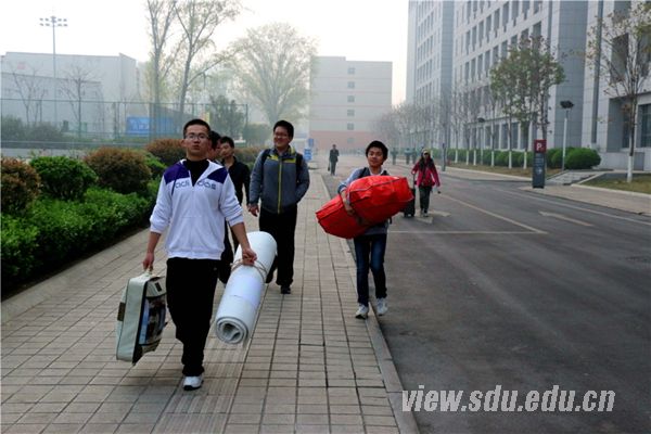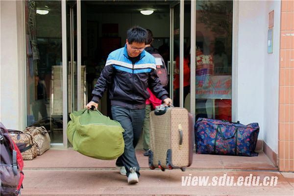 早上七时,校园还未完全清醒。14号楼下,一边是晨练的人群、早读的同学;另一边,2011级考古班的同学正把收拾好的行李摆放到宿舍楼门外,由于大部分女生的宿舍在六楼,所以一大早就开始忙活起来,有的宿舍更是全员出动帮助舍友把行李搬至楼下。