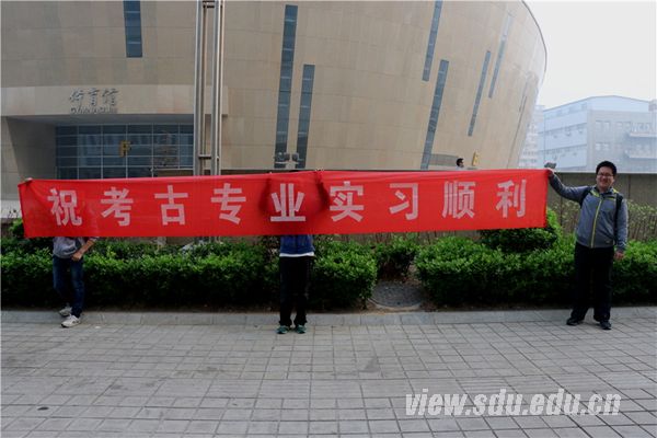 [本站讯]3月26日早上,历史学院2011级考古专业实习出征仪式在中心校区举行。简短的送别仪式后,参加此次考古实习的同学们踏上了前往大辛庄的路途,学院众多同学纷纷赶到出发地点为此次参加考古实习的同学们送行。
