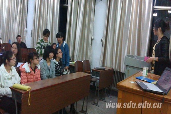 下午6时15分,培训会议正式开始。队长徐慧向全体成员展示第一次在济南市汇波小学志愿活动的照片,向没有参与这次活动的成员讲述志愿活动全过程,包括路线、如何与保安有效沟通、充实活动内容等。参与活动的七位队员谈了自己的活动经验和注意事项,其中队员黄迪负责展示英语口语并教唱英文儿歌,队员吴月娥负责讲解药用小常识,队员吴继莲负责有奖问答部分,队员朱万胜负责拍照,其余队员负责分发单页和奖品。参加志愿活动的队员们就如何活跃同学气氛交流了经验,并回答了其余其余队员的问题,俱乐部会长赵显也提出了建议。
