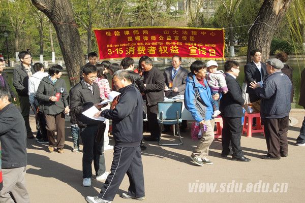十二届全国人大常委会第五次会议表决通过了新修订的《消费者权益保护法》。这是自1993年人大常委会制定《消费者权益保护法》以来首次重大修改。本次活动中,山东法制报以及国曜律师事务所的三名律师一同参与宣传。本次宣传活动全程历时两个小时,由法律援助中心的同学与国曜律师事务所的律师分工合作,共同完成新《消费者权益保护法》的普法宣传。法援实践部的李永杰、谢森等同学负责新《消费者权益保护法》的宣传工作,国曜律所的孔祥凯等几位律师负责针对过往行人提出的相关法律问题进行答疑。另外,此次活动中,新《消费者权益保护法》相关法律问题的有奖竞答环节吸引了行人的广泛关注,热情的行人纷纷前来围观,在民众中取得了较好的普法宣传效果。
