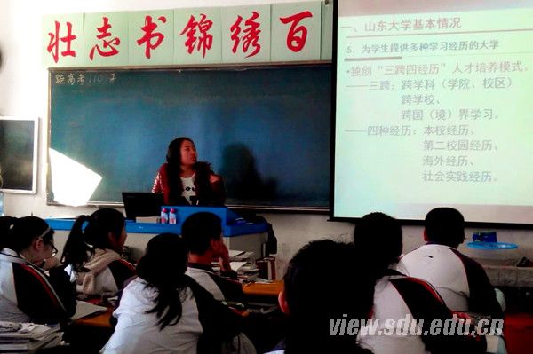 宣讲会以PPT展示的形式,向在场高中生介绍山大校史,就招考政策作解释说明,分享大学生活的奇闻轶事,交流学习经验。在互动环节,队员们解答了同学们有关专业选择的问题。回访小组发放调查问卷,调查大家的对大学报考的想法,同时了解宣讲效果。整个过程,同学们热情高涨,积极配合,进展顺利。