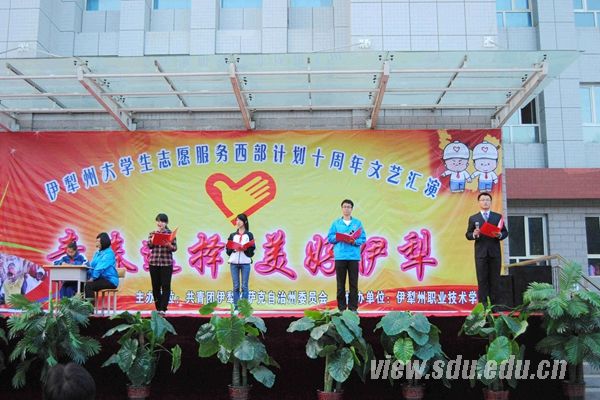 支教期间,团委组织了民族团结联谊会庆祝古尔邦节的到来。支教团成员利用契机,提前一个多星期鼓励学生表演节目,大胆展现自己。节目表演过程中,师生携手,赢得现场掌声不断。日常学习生活中,支教团成员关心学生安全,坚持每天送学生回家。“12·5志愿服务周”时,支教团集体筹划了“感恩之心、与孝同行”道德讲堂活动,引导辅导班学生常怀感恩,孝敬父母。在曲仪的引导下,辅导班的孩子们一起学习了《弟子规•入则孝》选篇,并完成孝道试卷。“道德讲堂”是红领巾爱心辅导班开设“精品课堂”的第一次尝试,也山东大学支教团创新支教方式的一个新起点。在伊犁州西部计划十周年文艺汇演中,支教团细心讨论每个节目。在支教团团长于新九的带领下,配乐诗朗诵《红领巾爱心辅导班的故事》经过一次又一次的排练,最终荣获本次文艺汇演一等奖。在伊宁县“我要上春晚”文艺汇演暨选拔赛中,配乐诗朗诵《红领巾爱心辅导班的故事》节目再次打动评委,感动选拔赛全场,最终获得伊宁县春晚的入场券。