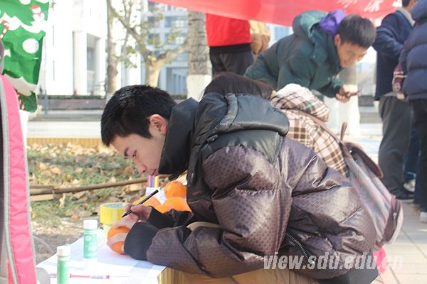 从采购优质橙子到准备现场,生命学院学生会生活部与环保协会的工作人员们一直在努力,将心中的祝福用画笔画到橙子皮上,更是工作人员们创造力的体现。来往的同学们纷纷祝福,或选购一个工作人员已经绘制好的橙子送给朋友,或接过画笔在橙子上抒写自己的祝福,“既能代表心意,又有创意,而且还实惠。”一位购买橙子的同学说道。而生命学院生活部与环保协会的工作人员们帮他们将橙子送往山东大学各个校区。